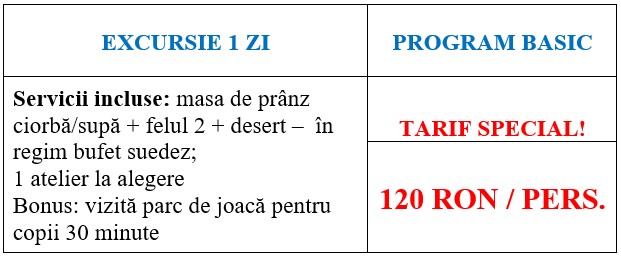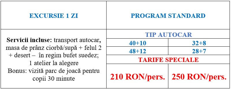 Program turistic destinat exclusiv elevilor și profesorilor însoțitori – maxim 10% din total grup. Pentru altă componență solicitați ofertă.