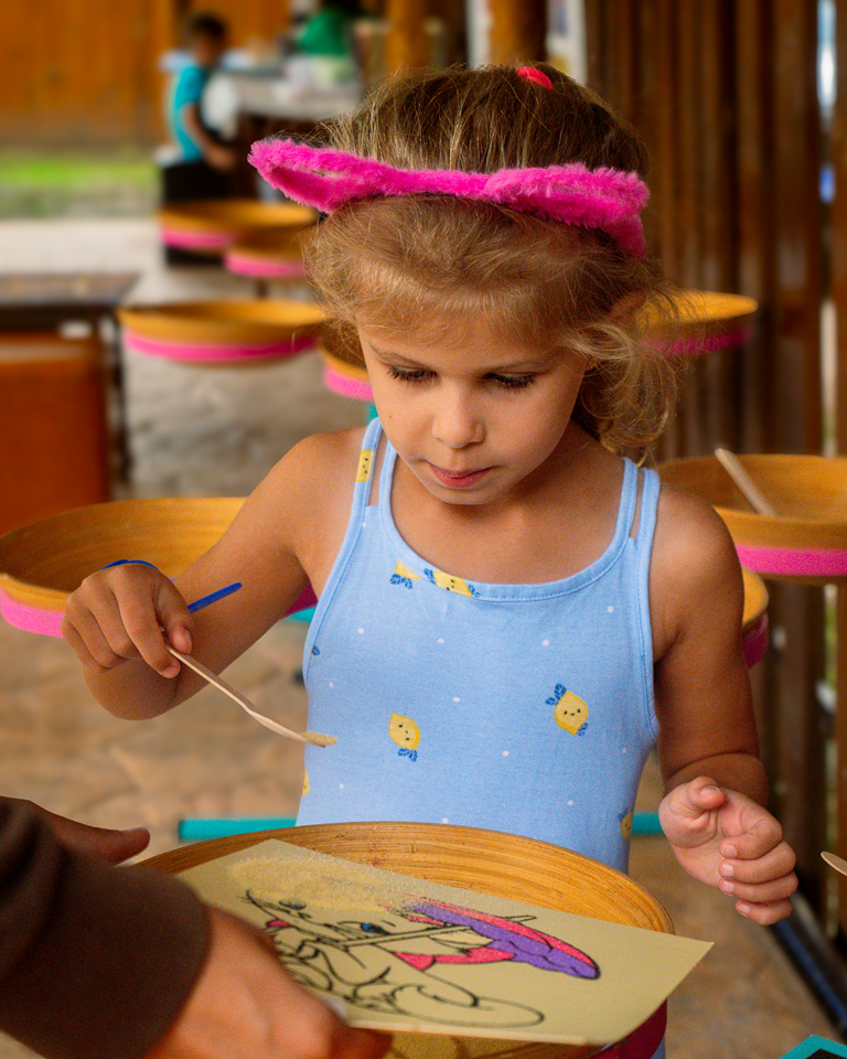 Vino să descoperi magia culorilor și a creativității într-un atelier unic de pictură cu nisip colorat! Această tehnică inedită îmbină jocul cu arta și îți oferă ocazia să creezi imagini spectaculoase, folosind doar nisip fin și nuanțe vii. Fiecare copil va primi o planșă cu șablon predefinit ilustrând personaje îndrăgite din desene animate și își va folosi creativitatea și imaginația pentru a realiza un tablou unic.