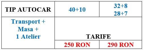 **Pentru excursiile organizate din Slatina și Arad se achită un supliment de 60 lei (autocar 50/60 locuri) respectiv 80 lei (autocar 35/40 locuri).
