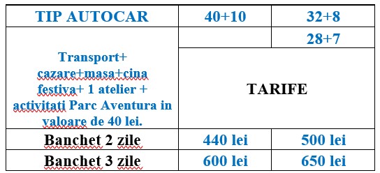 - Activitati optionale in Parcul de Aventura in valoare de 40 lei!